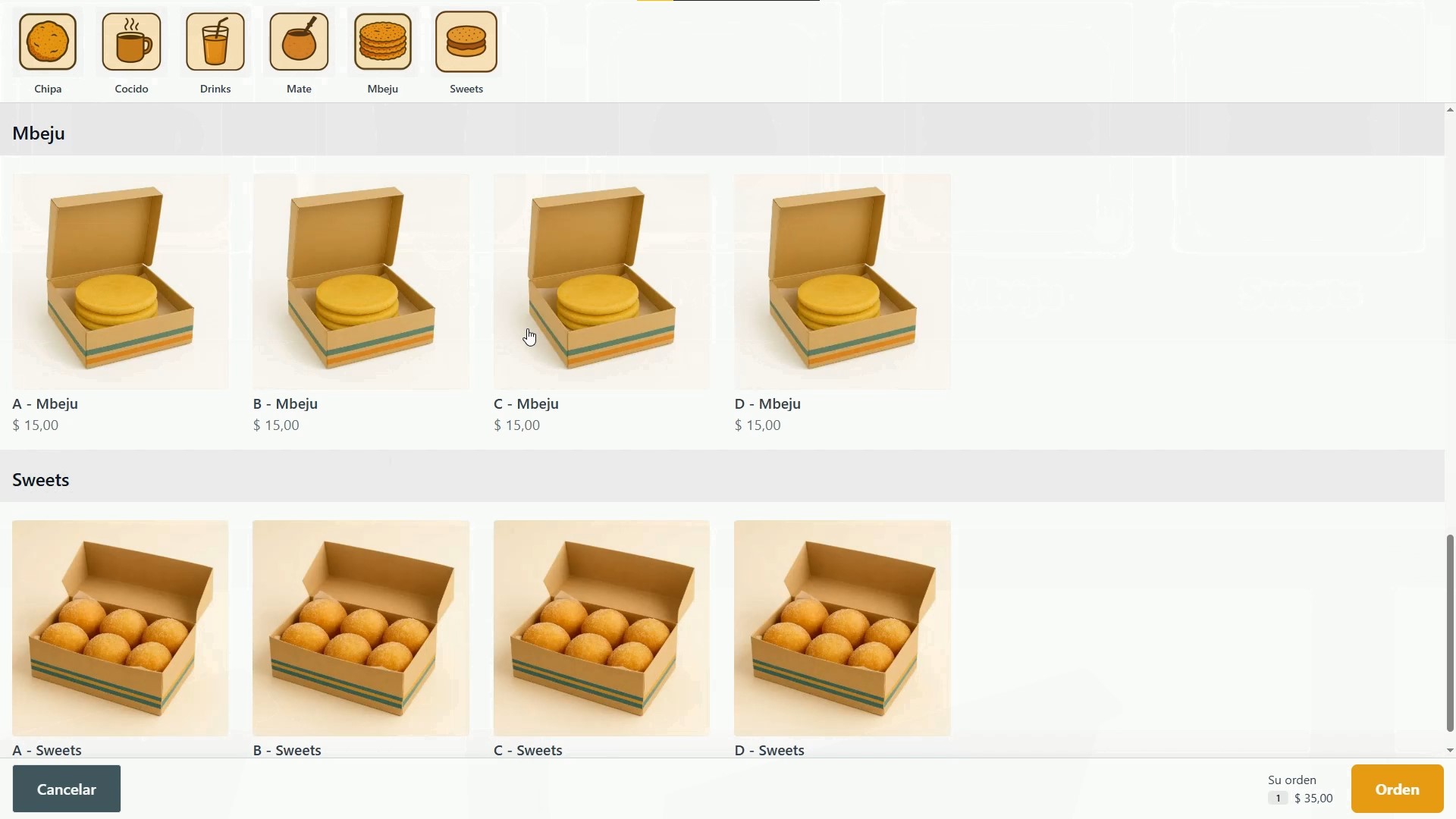 La experiencia es sencilla y se siente realmente como un menú de restaurante a la hora de elegir categorías y productos.